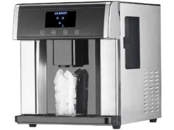 Rosenstein & Söhne Eismaschine:Premium-Eiswürfelmaschine Mit Eiswürfel- & Kaltwasserspender, 2 Liter