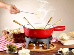 Rosenstein & Söhne Fondue:Käsefondue-Set Aus Emailliertem Gusseisen, Ø24 Cm