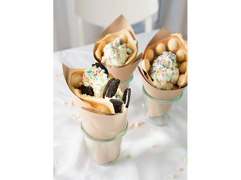 - Für Bubble Waffles: ideal zum Füllen mit süßen oder herzhaften Beilagen