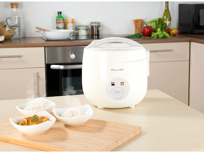 - Vollautomatische Zubereitung ohne Anbrennen: Wasser und Reis einfüllen, einschalten – fertig!