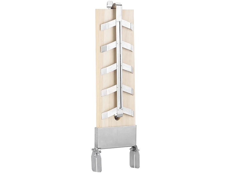 Einfache Handhabung: Fixieren Sie Ihren gewürzten Lachs mit der Edelstahlklammer auf dem Holzbrett und befestigen Sie das Lachsbett mit der Halterung an Ihrem Grill oder Ihrer Feuerschale. Durch die verstellbare Neigung sorgen Sie dafür, dass der perfekte Abstand zum Feuer gewährleistet ist.