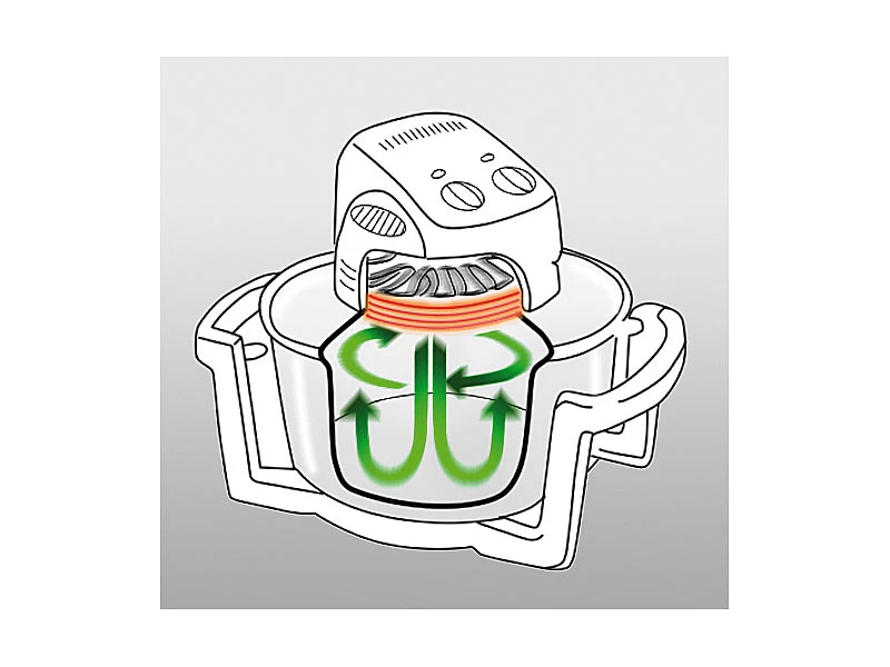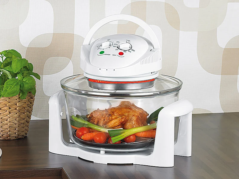 Der Halogen-Ofen ist die ideale Kombination aus Erhitzen mit Licht und dem bekannten Heißluft-Prinzip. Eine Halogen-Lampe sorgt dafür, dass der Ofen blitzschnell und mit minimaler Vorheizzeit die gewünschte Temperatur erreicht. Der Ventilator verteilt die warme Luft gleichmäßig im Garraum.