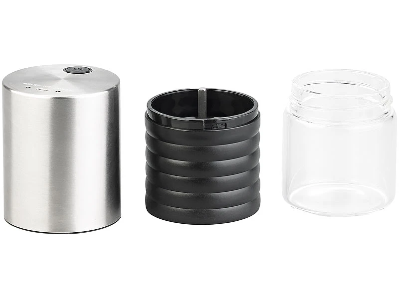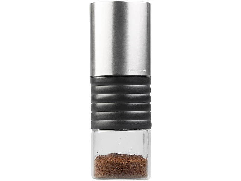 - Auffang-Behälter aus Glas: zur Aufbewahrung des Kaffeepulvers ohne Aroma-Verlust