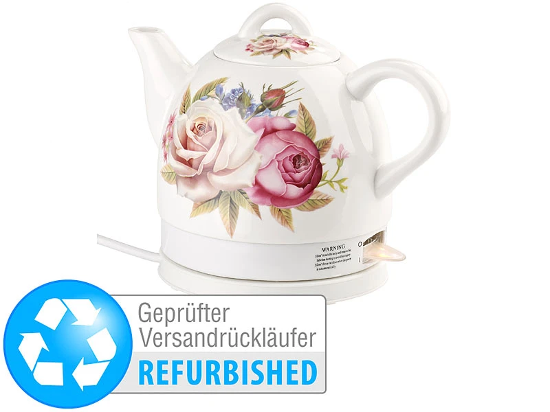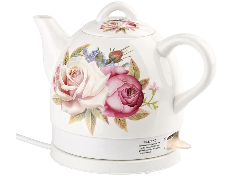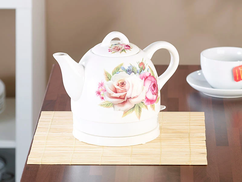 - Keramik-Wasserkocher mit Blumen-Motiv