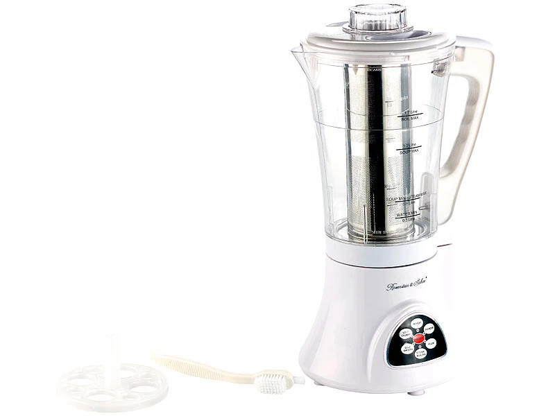 - Suppenzubereiter inklusive Schneidemesser, Deckel, Einfüllverschluss mit integriertem Messbecher, Edelstahl-Filter, Bürste, Schwamm und deutscher Anleitung mit leckeren Rezepten – Milk Maker – Außerdem relevant oder passend zu: Soy, Heiz, Soja, Eier, Suppe, Shaker, Kaffee, Rezepte, Roboter, Smoothie, Eierkocher, Dampfgaren, vegan, Küchenhelfer, Zerkleinerer, Getreidemilch, Milch Maschine, Püriermaschine, Milchaufschäumer