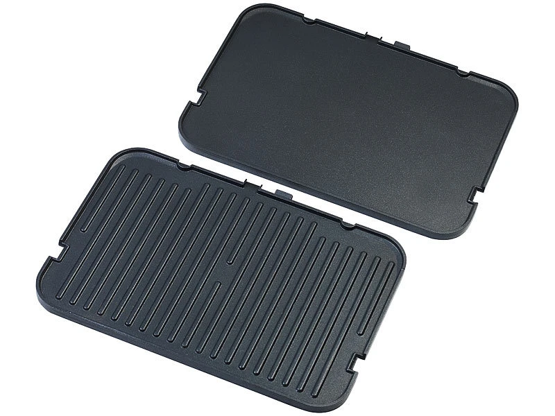 - 2 Grillplatten: eine glatte Platte und eine Platte mit Rillen für intensive Grillmuster
