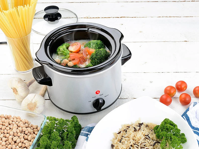 - Schongarer inklusive Keramik-Innentopf, Glasdeckel und deutscher Anleitung – Elektrischer Topf mit Thermostat – Außerdem relevant oder passend zu: 42, Reis, Herd, Töpfe, Bräter, Vakuum, Kochen, Steamer, Pfannen, Elektro, Sous Vide, Schnecken, elektrisch, Dampfgarer, Reiskocher, Cooler, Einkochtopf, Mini Slow Cooker, Elektrische Pfanne