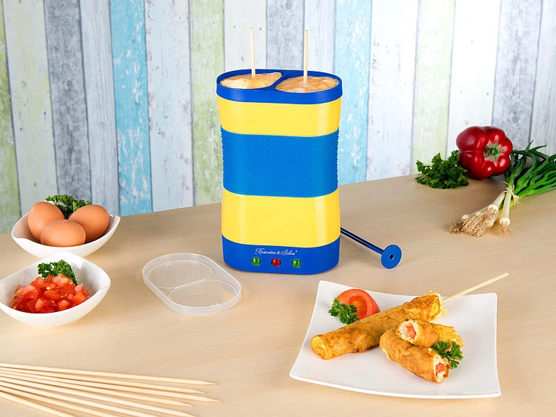 Ei in allen Varianten: Für leckere Rührei-Variationen würzen Sie die Ei-Masse mit frischen Kräutern und Gewürzen oder fügen weitere Zutaten wie Speck- oder Zwiebelwürfel hinzu. Auch süße Pfannkuchen am Stiel gelingen hervorragend, wenn Sie statt Eier einfach Teigmasse in den Garer füllen.