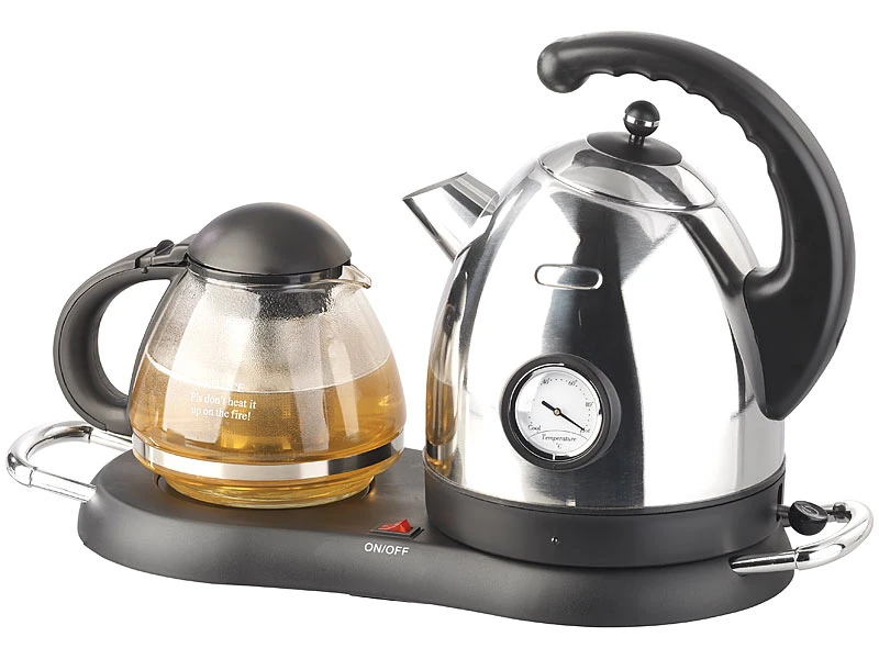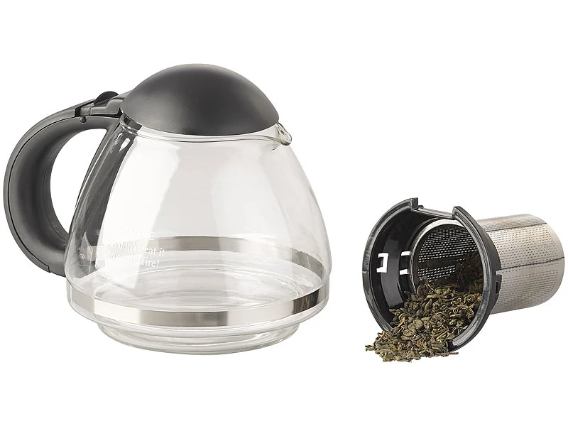 - Teebereiter-Set inklusive Wasserkocher, Tablett, Glaskanne mit Edelstahl-Teefilter und deutscher Anleitung