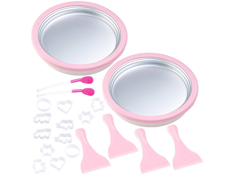 - 2er-Set Eisbereiter-Platten inklusive je 2 Schabern, je 6 Ausstech-Förmchen und Löffeln – Teppanyaki Eismaschine – Außerdem relevant oder passend zu: Roll, Kühl, Tisch, Tokio, Küche, Pfanne, Automat, Joghurt, Speiseeis, Eisformen, Schokolade, Waffeleisen